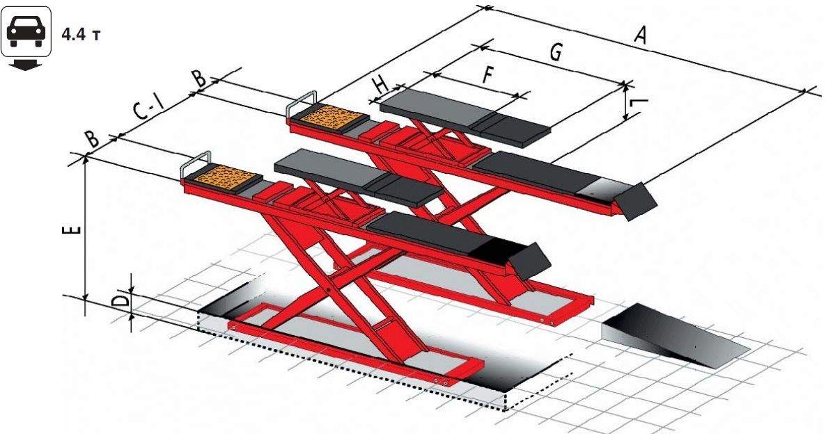 Kích thước cầu nâng cắt kéo cho kiểm tra góc đặt bánh xe ERCO X4300CTLT