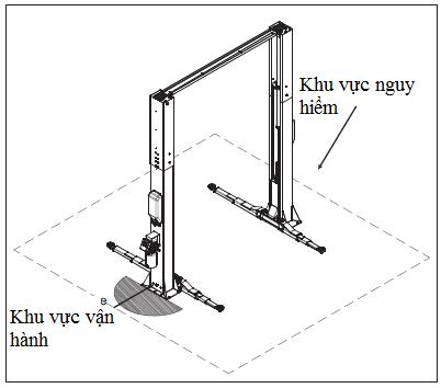 - Hình minh họa các bộ phận khác nhau của cầu nâng và các khu vực làm việc giành giêng cho những người vận hành trên toàn bộ cầu nâng