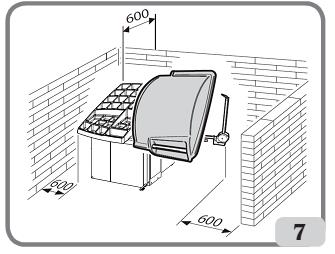 Sau khi lắp máy xong, để máy ở vị trí đã xác định sẵn và đảm bảo không gian xung quanh phải đủ như mô tả trong hình.