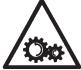 Không được nhấc tấm bảo vệ khi bánh xe đang quay. |