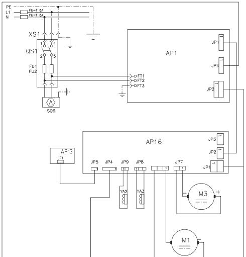 - Một trong các cầu chì FU 1-FU2 ở đằng sau tủ điện máy bị đứt. Thay thế cầu chì bị đứt.