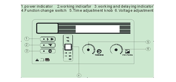 - Xoay công tắc chức năng trên máy hàn rút tôn CRS-307 tới kiểu tôi. Khoảng thời gian hoạt động điều chỉnh bằng chiết áp đặt giờ (TIMING)