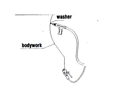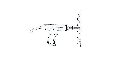 - Đặt vòng đệm (thường thì nó là hình tam giác thường đi kèm cùng máy) vào trong chấu kẹp trên súng hàn giật. Ấn chặt vòng đệm vào vị trí cần hàn ( đừng ấn mạnh quá làm thủng vỏ xe)