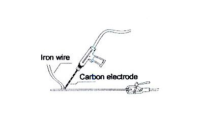 + Sau đó sử dụng điện cực cacbon để hơ nóng vùng cần sử lý