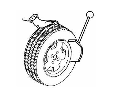 Điều chỉnh các chấu cặp bằng cách nhấn bàn đạp H ở máy thay lốp xuống vị trí trung gian, sau đó đặt lốp xe lên mâm chấu cặp và giữ cho vành ép xuống, tiếp tục nhấn hết hành trình bàn đạp H.