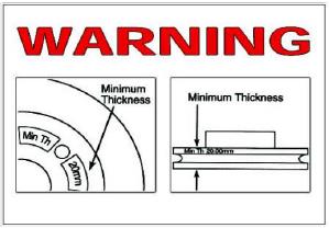 Trước khi bạn tiện đĩa, đầu tiên bạn cần phải kiểm tra độ dầy và mỏng nhất bằng dụng cụ đo theo quy định của nhà sản xuất, bạn không nên tiện quá độ dầy nhỏ nhất. Khi bạn tiện quá mỏng nó sẽ sinh ra tai nạn cho bạn và bạn phải tự chịu trách nhiệm.