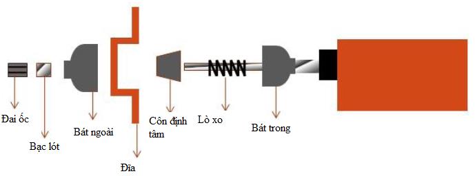 - Lắp vòng cao su và kiểm tra, đĩa và các phụ kiện phải được lắp theo trình tự sau