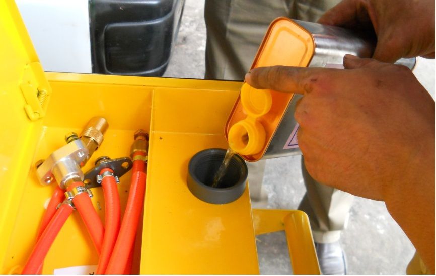 - Bổ xung nhiên liệu và trong thùng chứa nhiên liệu, ( ở thiết bị thông rửa động cơ, từ 1,5- 2,5 lít )