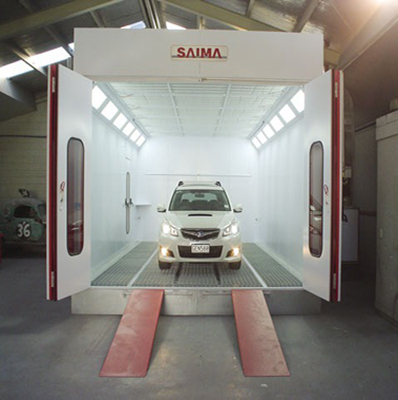 Phòng sơn cho sơn gốc nước và gốc Saima là phòng sơn ô tô sản xuất theo công nghệ tiên tiến của Châu Âu với công nghệ sấy nhiệt dùng các tấm gia nhiệt làm nóng bề mặt kim loại, phòng sơn thay đổi hoàn toàn cách sấy truyền thống bằng đốt dầu diesel tạo ra năng suất cao, rút ngắn thời gian sấy. Với sự phát triển của công nghệ hiện nay, đa phần các hãng dịch vụ sửa chữa ô tô lớn đều dần chuyển sang sử dụng sơn gốc nước ít gây độc hại với người sử dụng, đảm bảo được sự an toàn cho môi trường xung quanh.