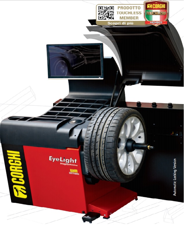 Thiết bị cân bằng động vi tính với màn hình cảm ứng, EyeLight tự động nhập thông số có chức năng tự chuẩn đoán tình trạng lốp nhanh chóng, chính xác, đáng tin cậy và dễ sử dụng cũng là tính năng tuyệt vời mà thiết bị này đang sử hữu, thể hiện đẳng cấp công nghệ của Corghi trên góc độ toàn diện.