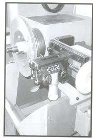 - Sau khi lựa chọn điểm thích họp nhất cho máy tiện, cố định tại vị trí đó. Sau đó dùng tay quay và núm điều chỉnh, điều chỉnh sao cho lưỡi cắt tiếp xúc với bề mặt phải và trái tại điểm ăn mòn nhiều nhất. Xiết bu lông phía dưới bàn dao, và để thước đo ở bị trí 1800 bên trái.