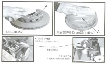- Loại bỏ hết rỉ sét ở đĩa phanh và trống phanh (chi tiết A) và mặt trước của máy tiện trước khi gá.